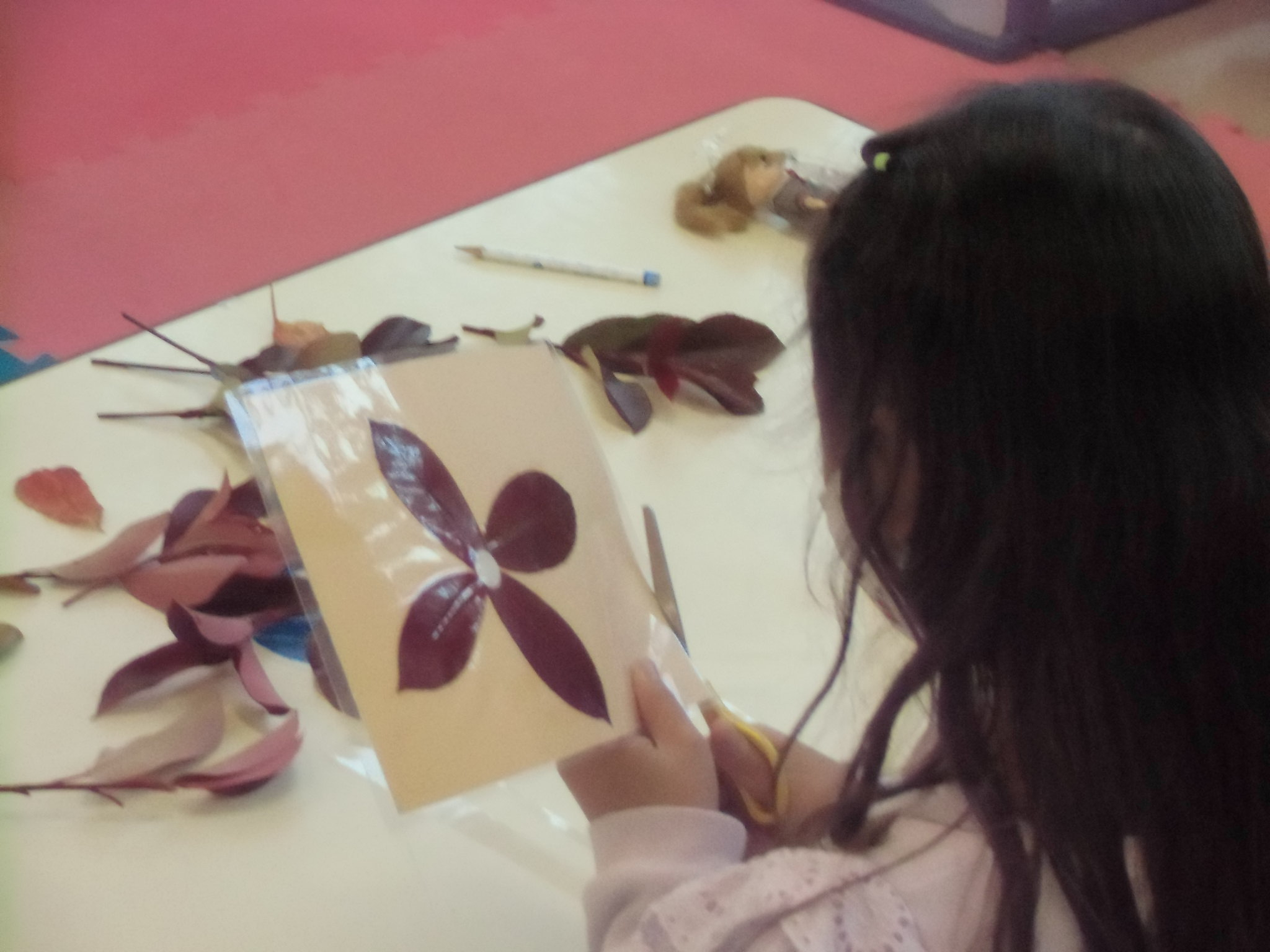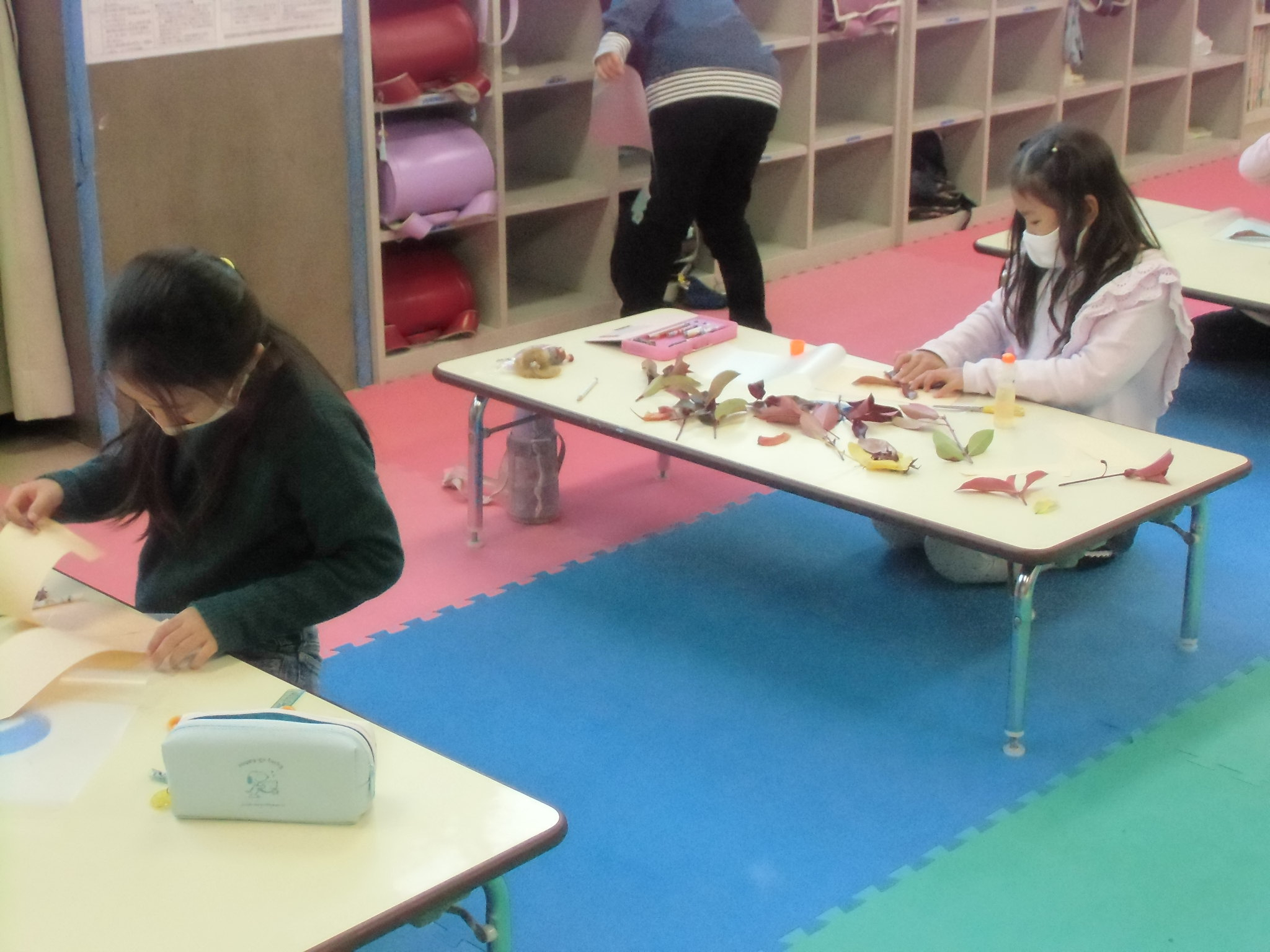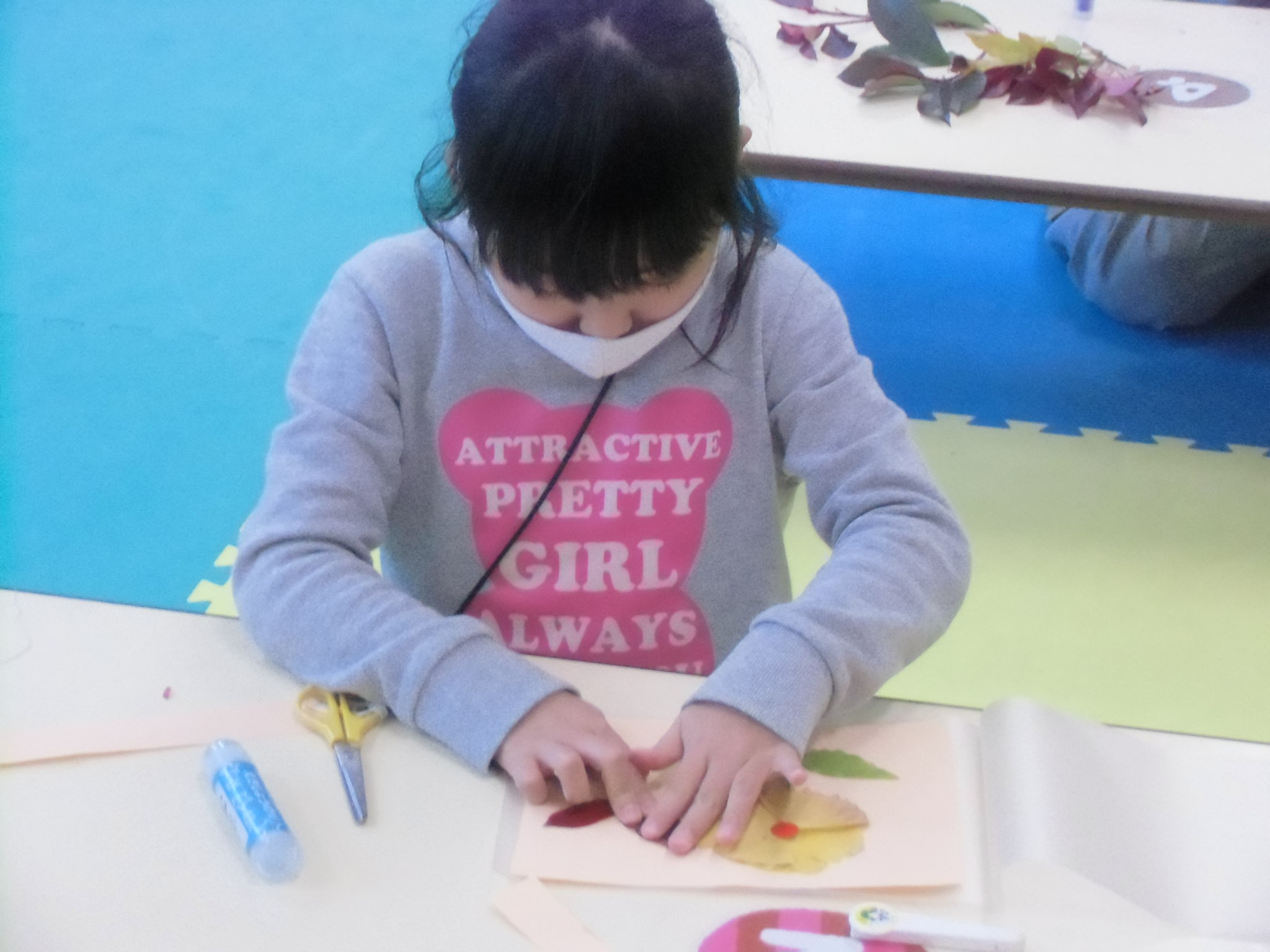 先日、『みんなで遊ぼう』で落ち葉を使って作品作りを行いました。