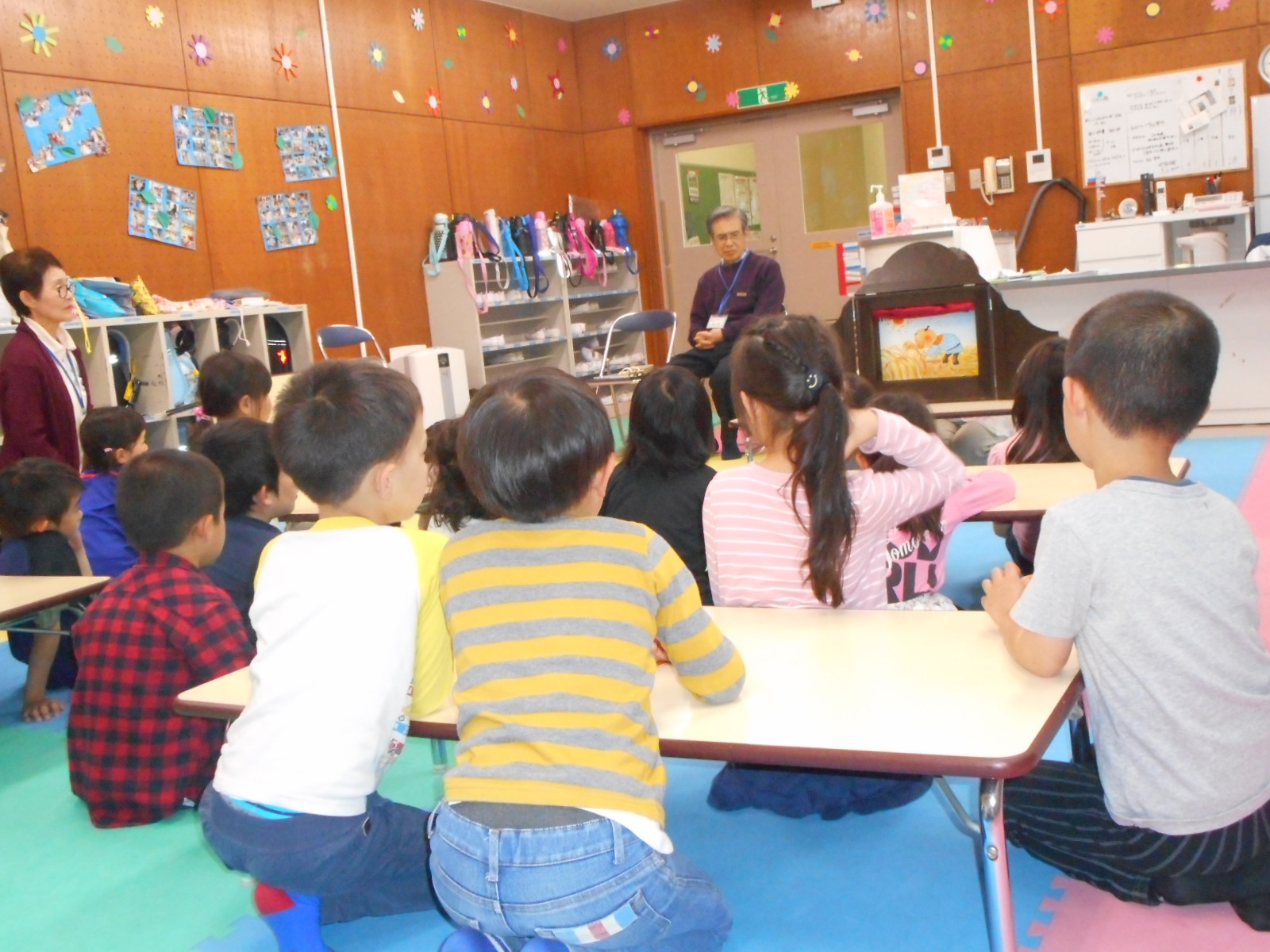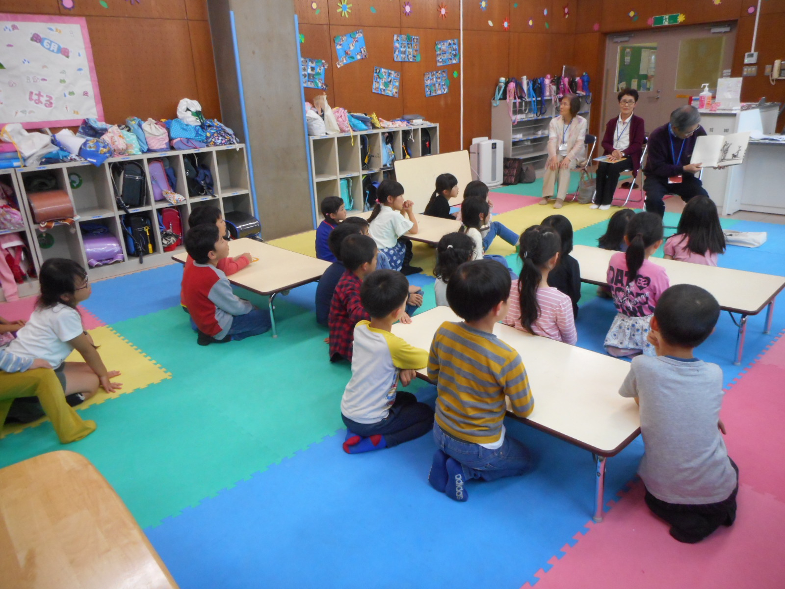 2種類の絵本に1つの紙芝居のお話を聞かせていただき、子どもたちも集中しよく聴いていました。