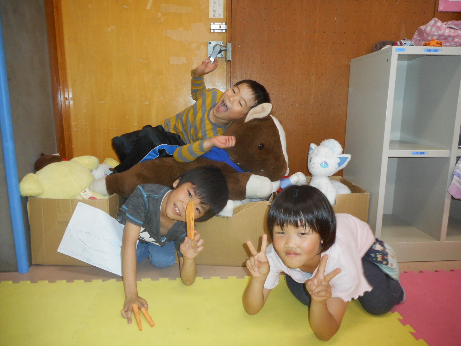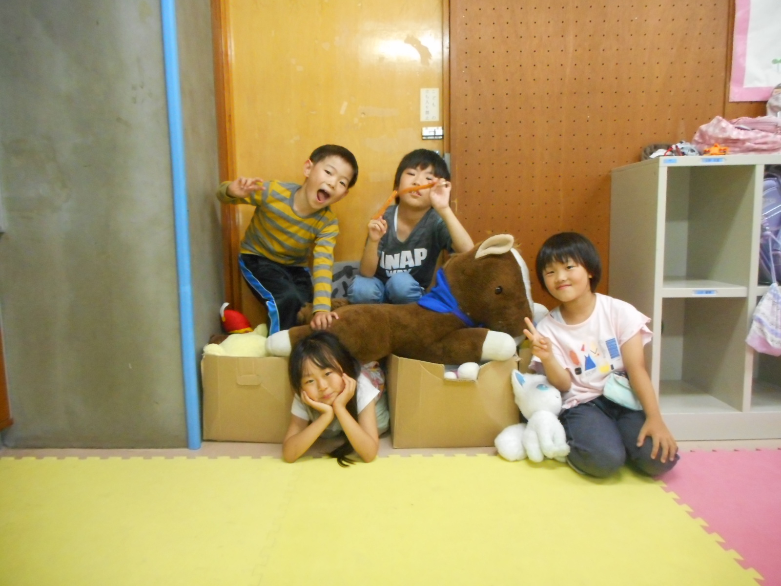ぬいぐるみに埋もれながら、可愛い笑顔でお友達とパシャリッッ!!!