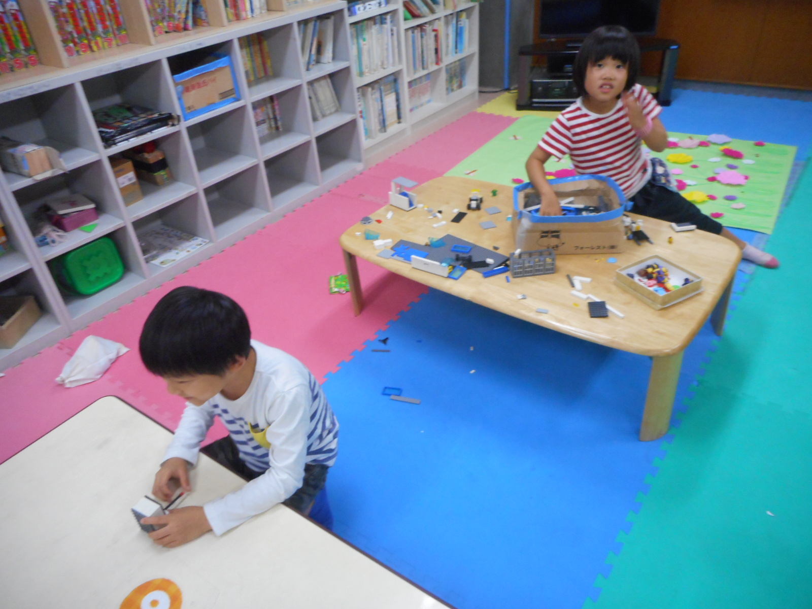 男女で仲良く作品をつくったり、学年同士で真剣に勝負をしたり、男子のみでトランプを盛り上がったりと