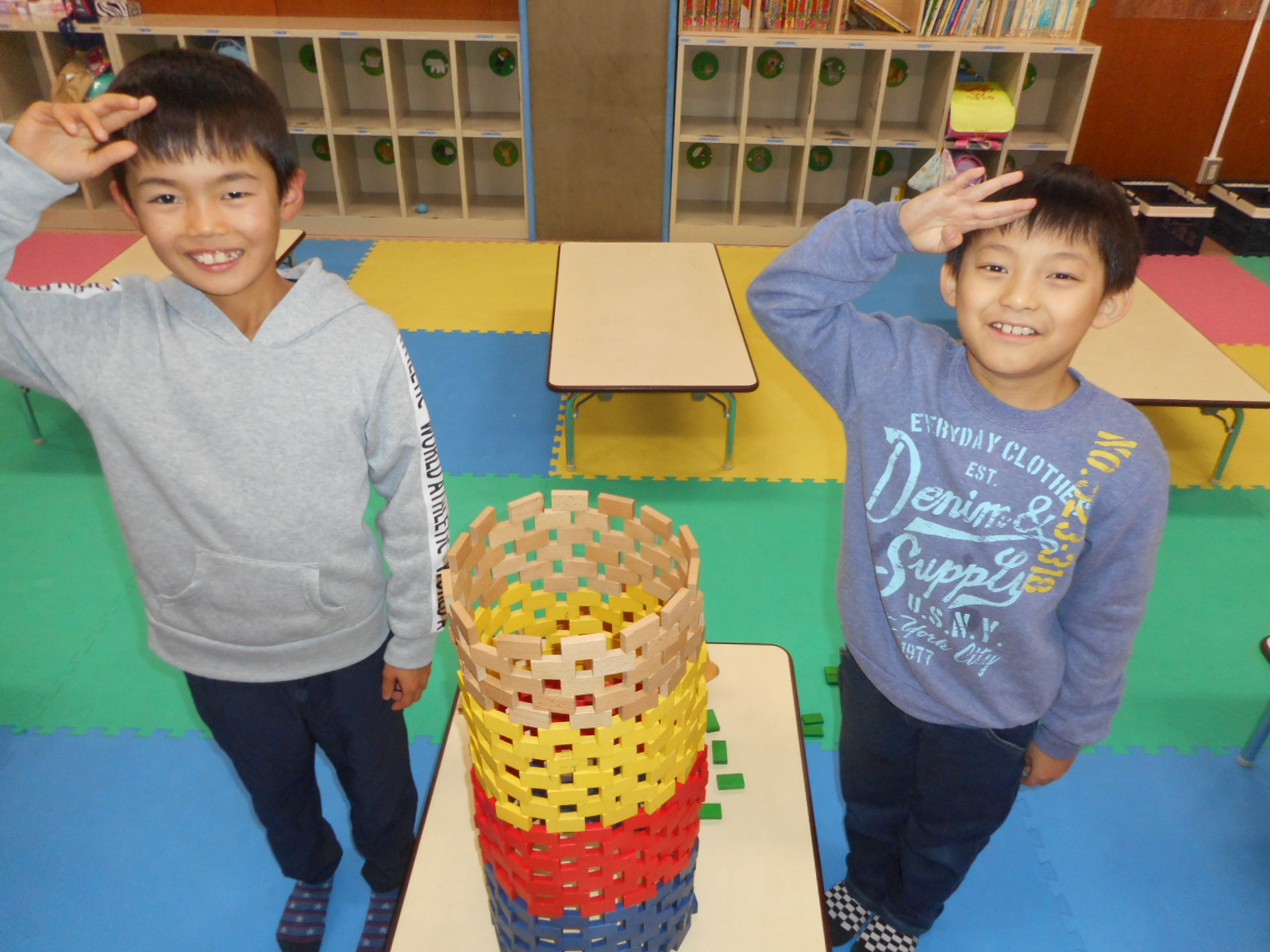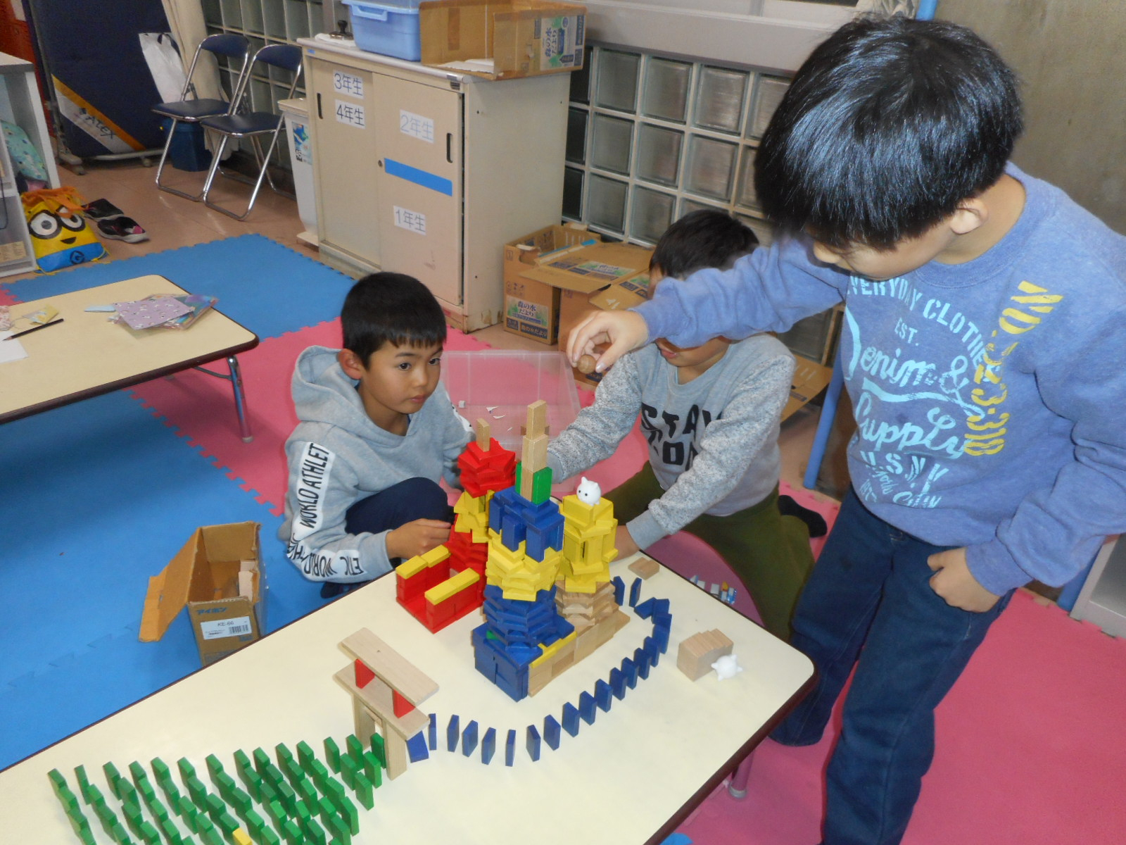 ★ 3年生男子が協力してドミノを遊んでいます!!!!!