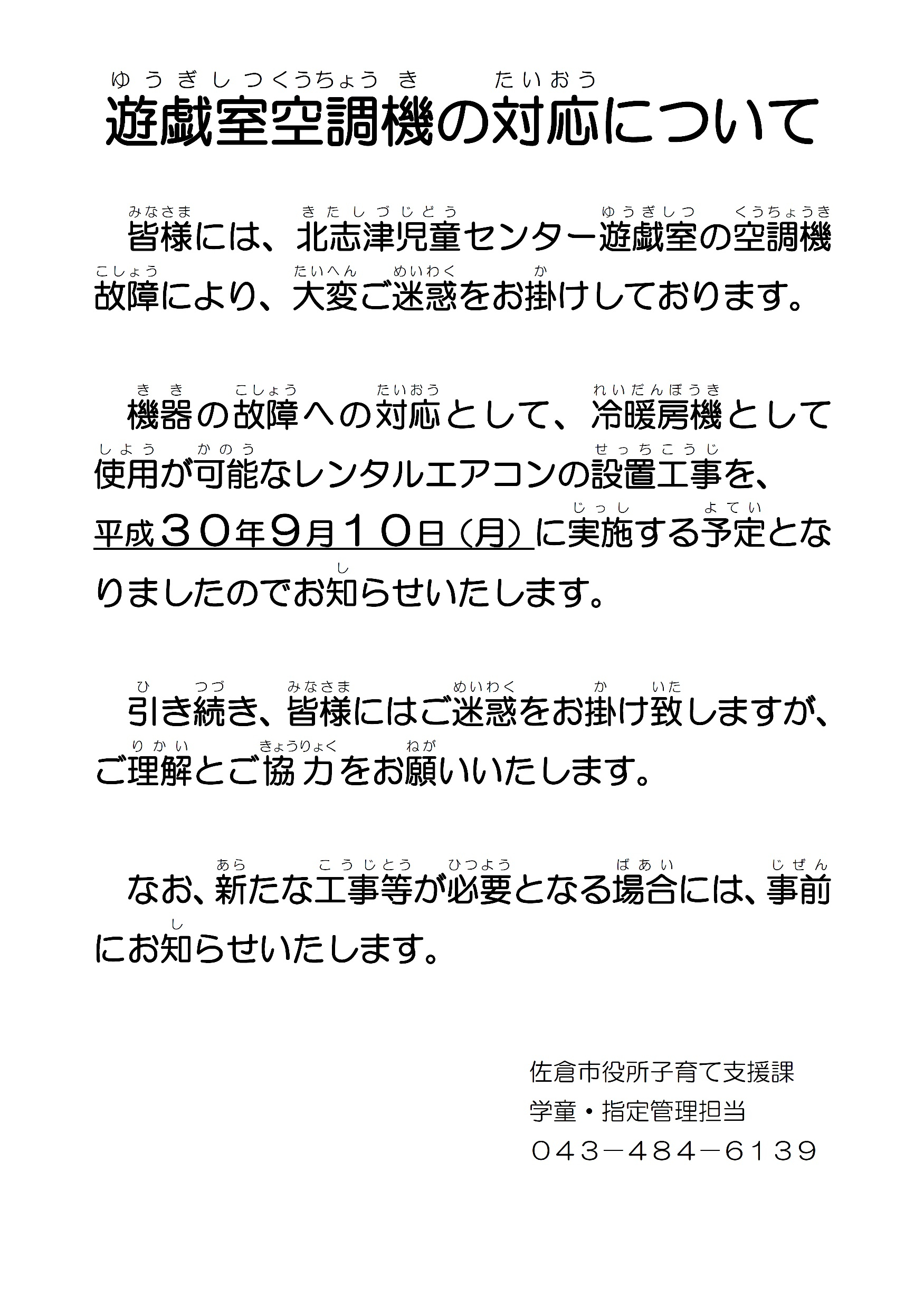 2018/09/04 遊戯室の空調設備について