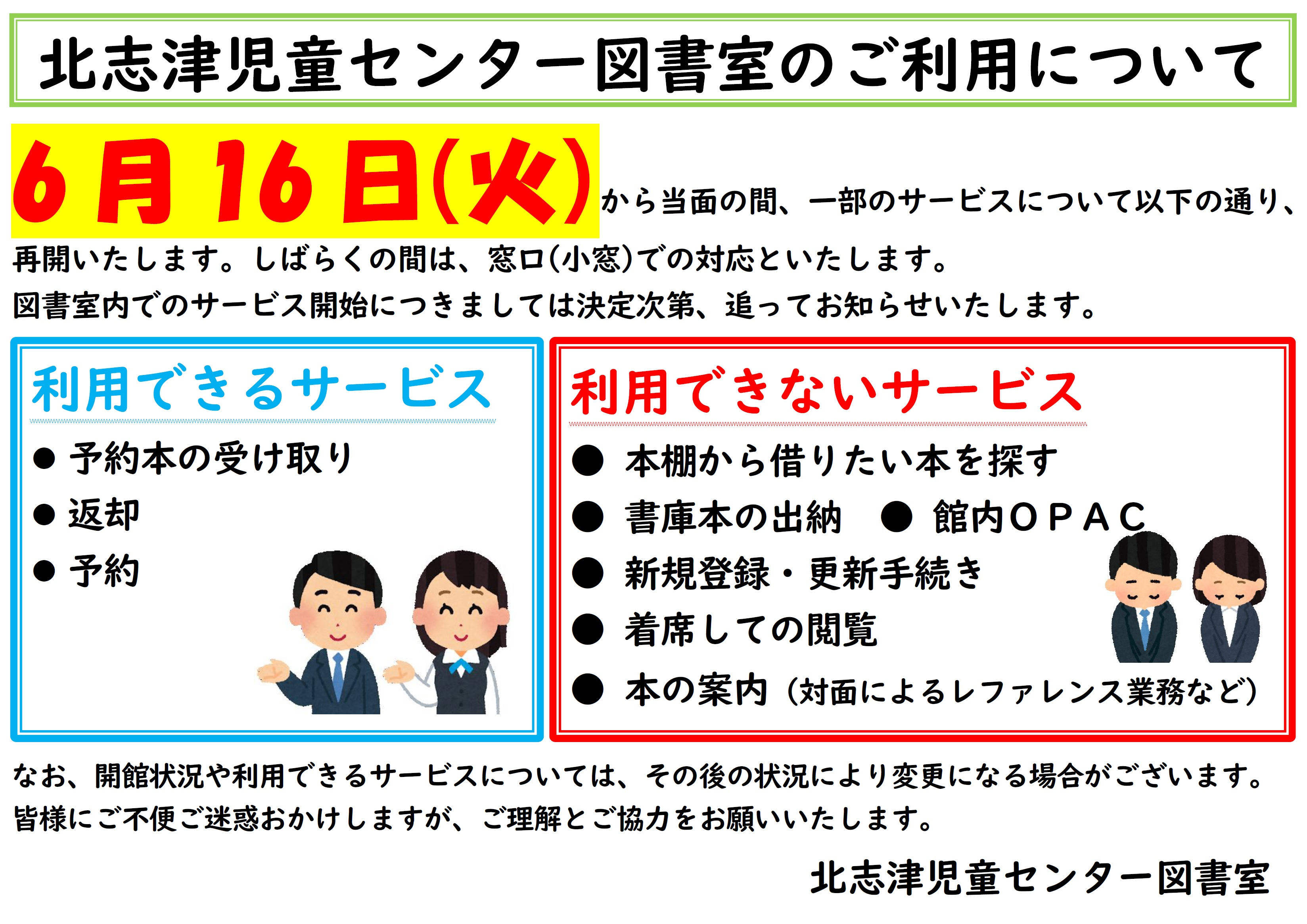 ●図書室に関しては6/16~は一部制限をしての開室となります。