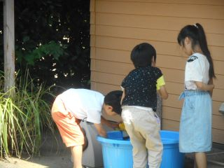 夏休みに入ってから水遊びの方を始めました。短い期間ではありますが、子ども達にとって良い