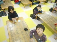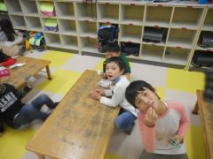 井野学童ではその日の人数にも寄りますが、基本的におやつや学習は1机3人までとしています。