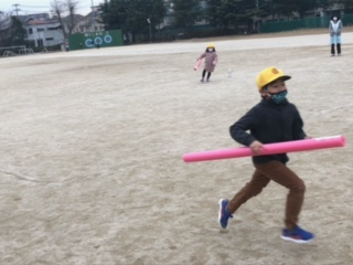 子ども達で作戦会議をして、持ち方や走り方を工夫してみんなで楽しく走れていました。