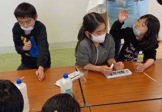 子どもたちは楽しく思い思いの色のスライム作りをしていました!