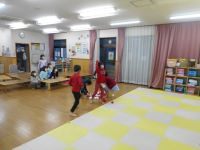 人数が少ない事もあり、登所している子ども達みんなで机を動かして玉入れをしました!