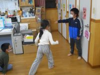 井野学童では今、室内ではだるまさんがころんだ。外遊びではかけっこと泥だんご作りが
