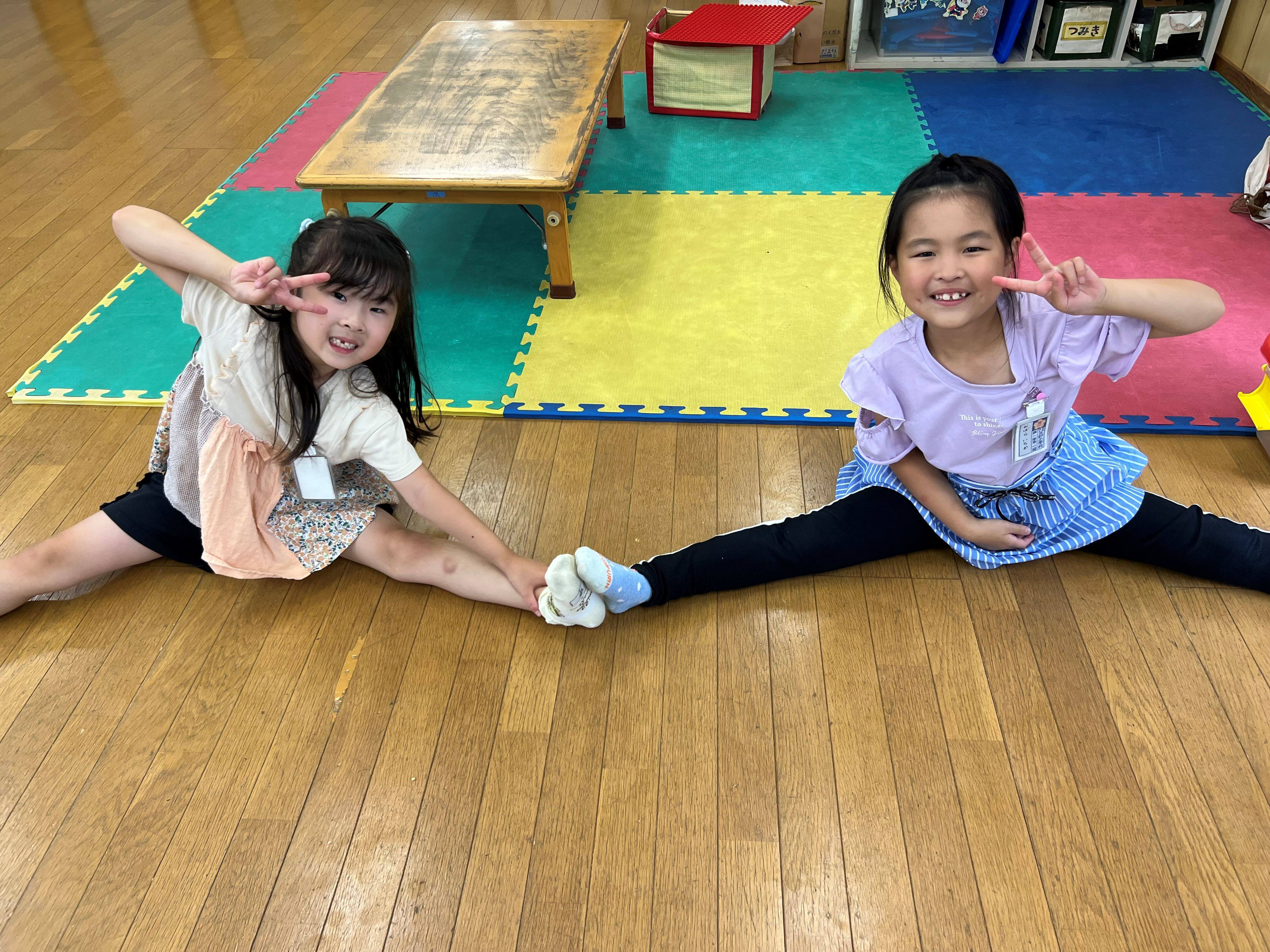 「先生見て~!写真撮って!」と工作や体の柔らかさを見せてくれます(*^-^*)