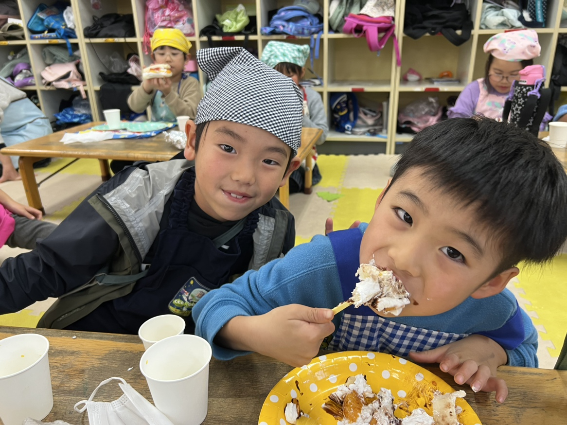 「もっとクリーム!」「この飾りつけ見て~♥」と楽しそうに作っていて、指導員一同みんなの笑顔が見れてお腹いっぱいです(笑)何名かサンタになっている子がいたような...