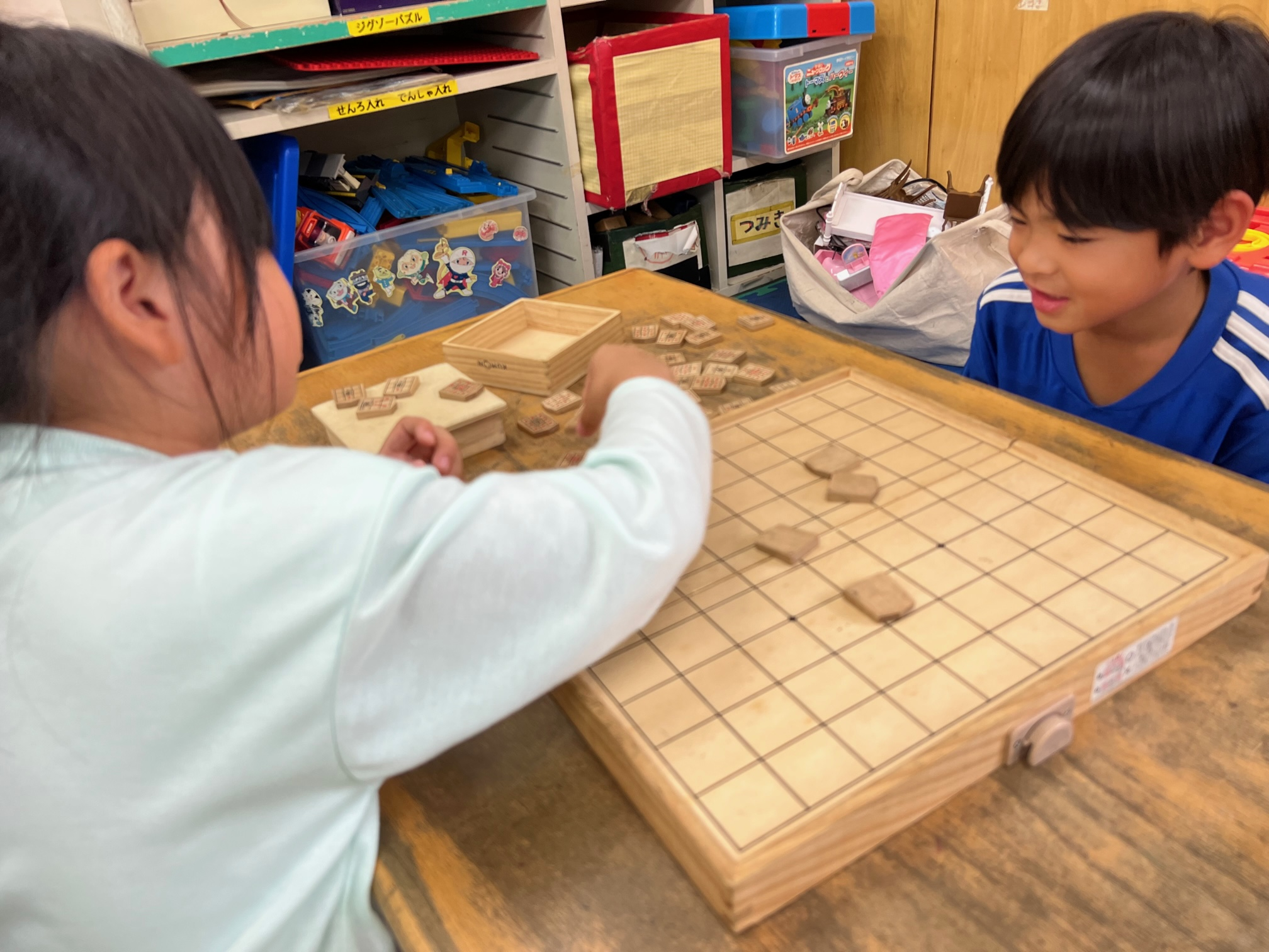 最近の室内あそびでは自分で考えた工作をしたり、将棋教室でお友達と対戦したり、おままごとしたり