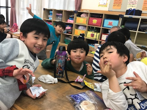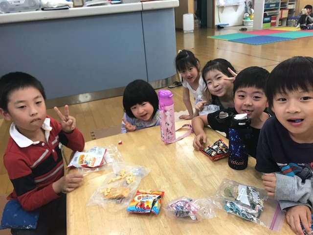 自分の1番好きなおやつの袋を用意し、食べ始めますがおやつの際にも
