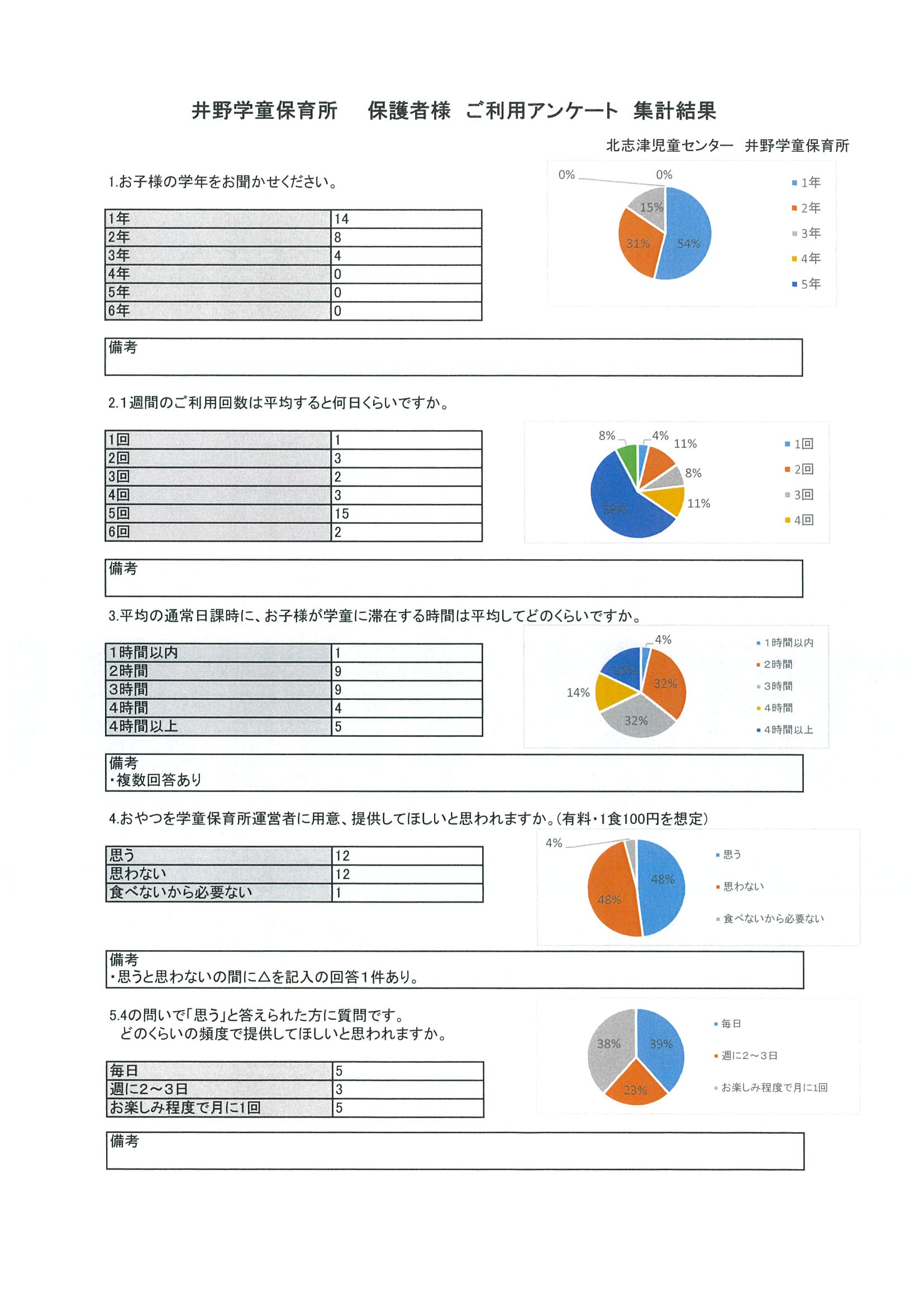 2018/05/18 平成29年度 井野学童保育所 アンケート結果