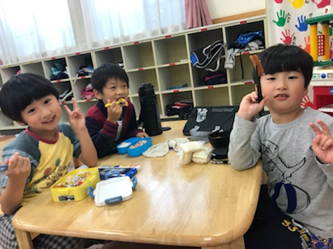 などと、お友だちとおかずの見せ合いっこをしたり、