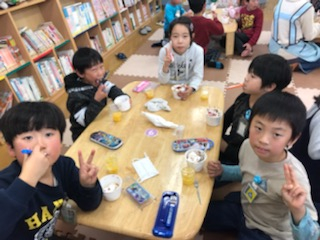また、○×ゲームやじゃんけん大会をしながら遊びを楽しんでいると・・・