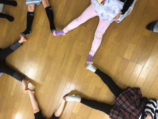 友達と足を合わせて綺麗な星マークを作る子たちも居ました。
