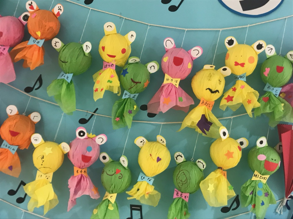 作ったもので、かわいいかわいいケロちゃんたちを親子で作りました♪