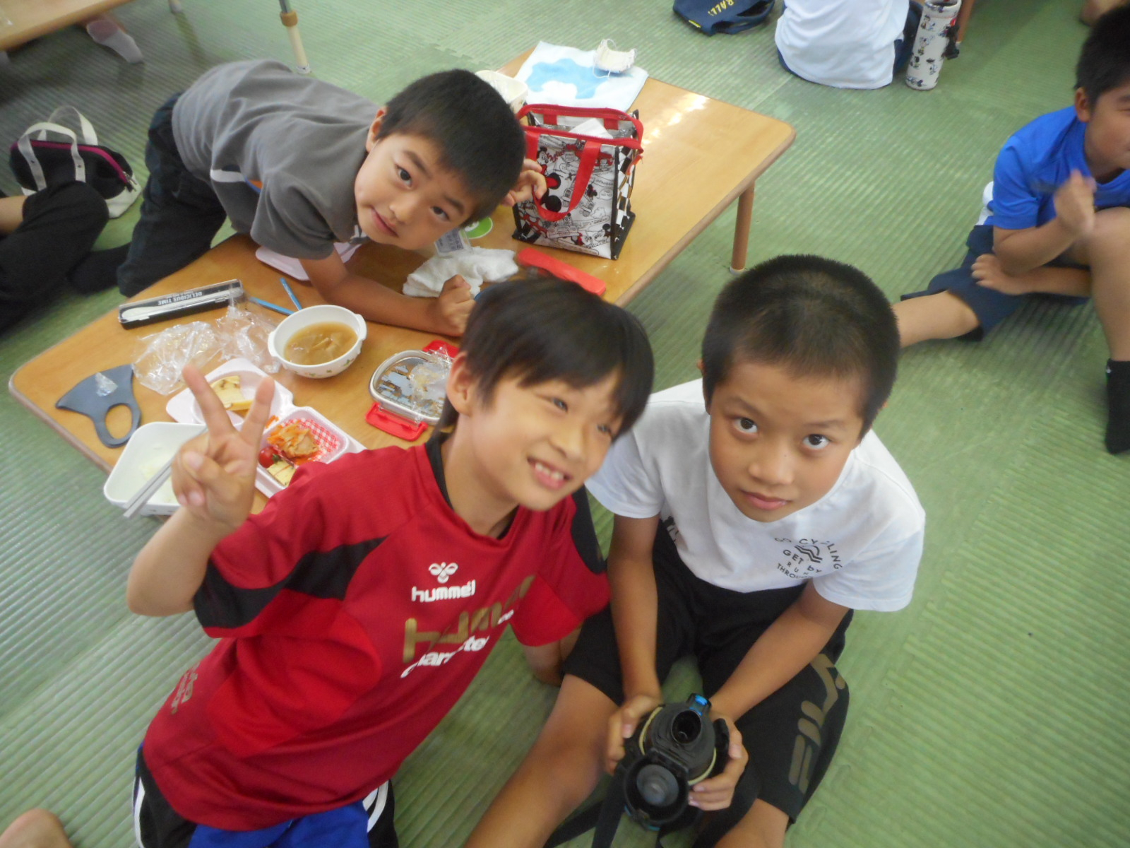 お昼ご飯では、お弁当や給食をみんな美味しそうに食べていました!