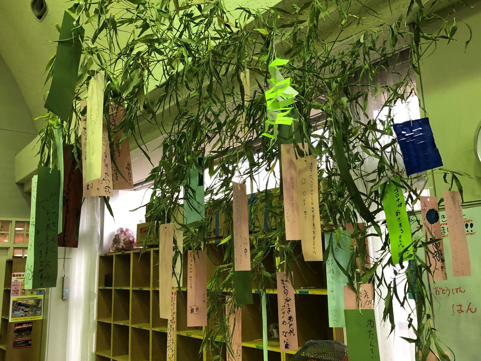 先日、学童にも七夕用の笹が来たので、みんなで願い事を書きました。飾りつけも作りたい子が手伝ってくれて賑やかな飾り付けをすることが出来ましたね。