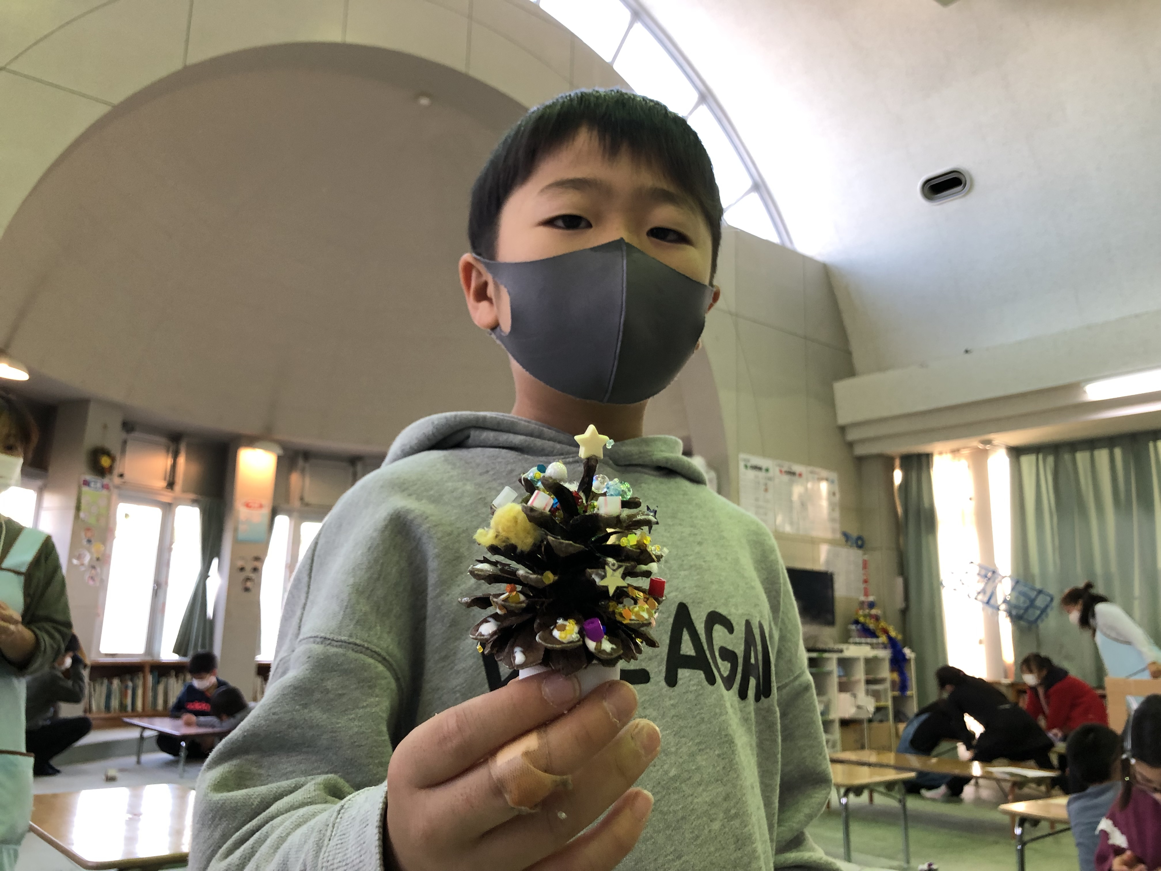 先日のクリスマスに松ぼっくりを使用してクリスマスツリーを作りました!