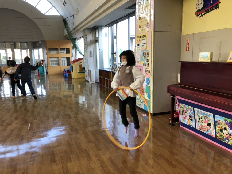 遊戯室では、体を動かす遊びの他に、「チャレンジ」といって、他のお友だちの記録と競うことが出来ます!
