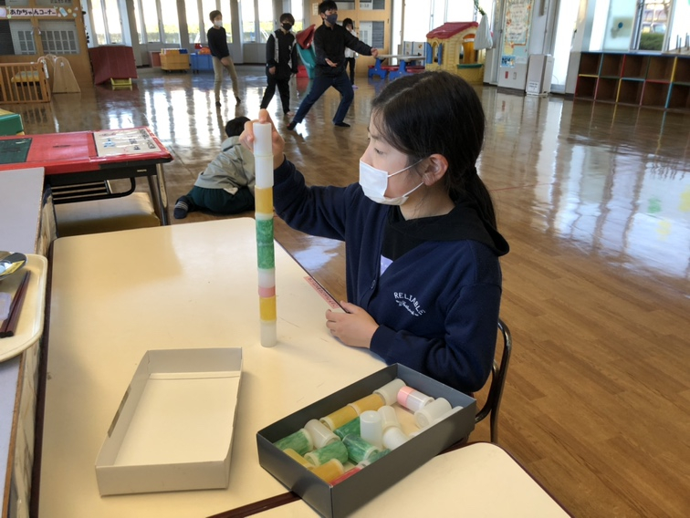 フラフープやフィルムケースタワー・・・などたくさんあるのでみんなどんどん挑戦しましょうね♪