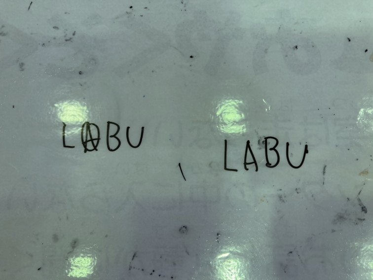 も~!誰だこんなところに落書きして!……と思いつつも、スペルの間違いに思わずクスッと笑ってしまい、消す前に一枚撮った写真でした。