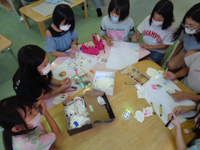 子どもたちが顔を描いてくれたものを学童室中に張り付けていきます。これからまだまだ増えていきますので、ぜひお迎え時にチェックしてみてください!