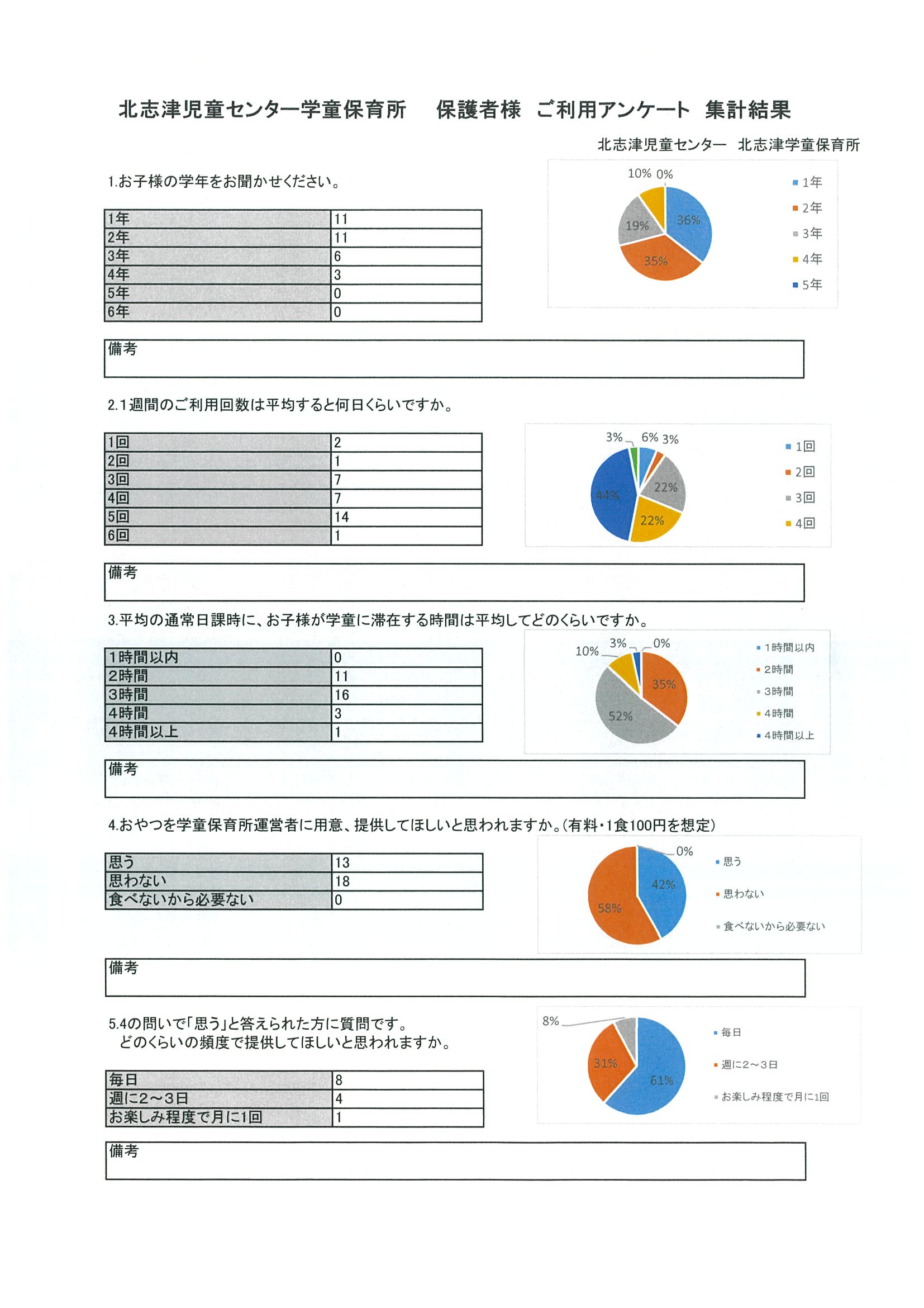 2018/05/18 平成29年度 北志津児童センター学童保育所 アンケート結果