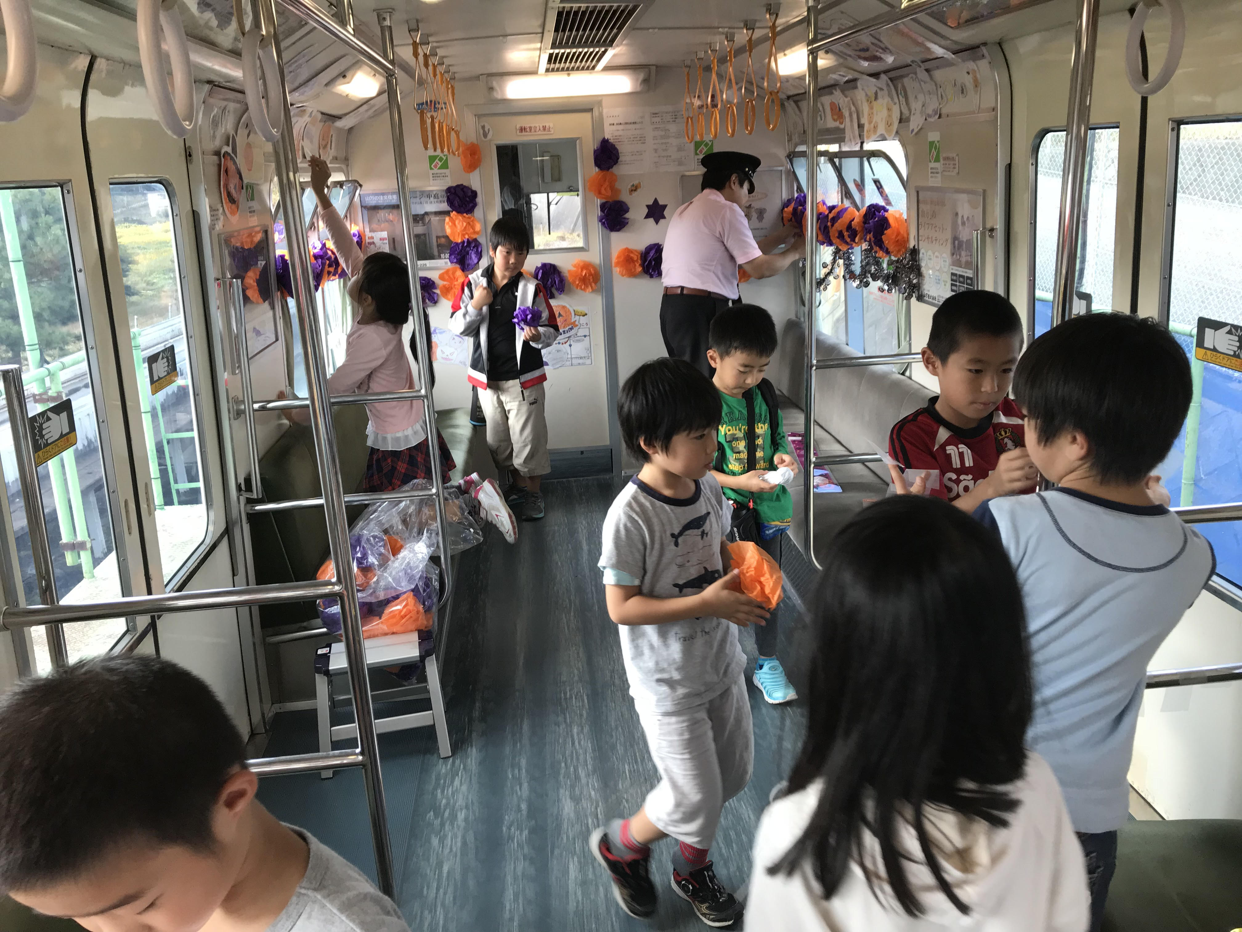 学童のみんなで、「山万ユーカリが丘線」の列車をハロウィン仕様に致しました!