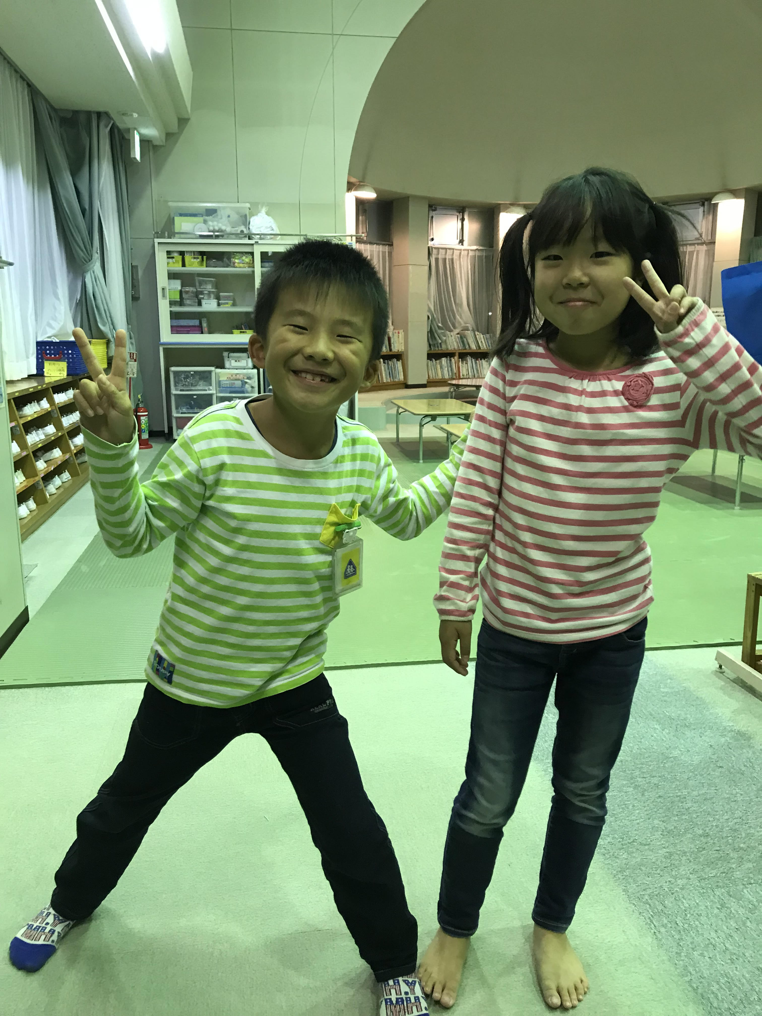 似てる服を着てきた二人!お互いに「おんなじ服だー!」とびっくりしていました!