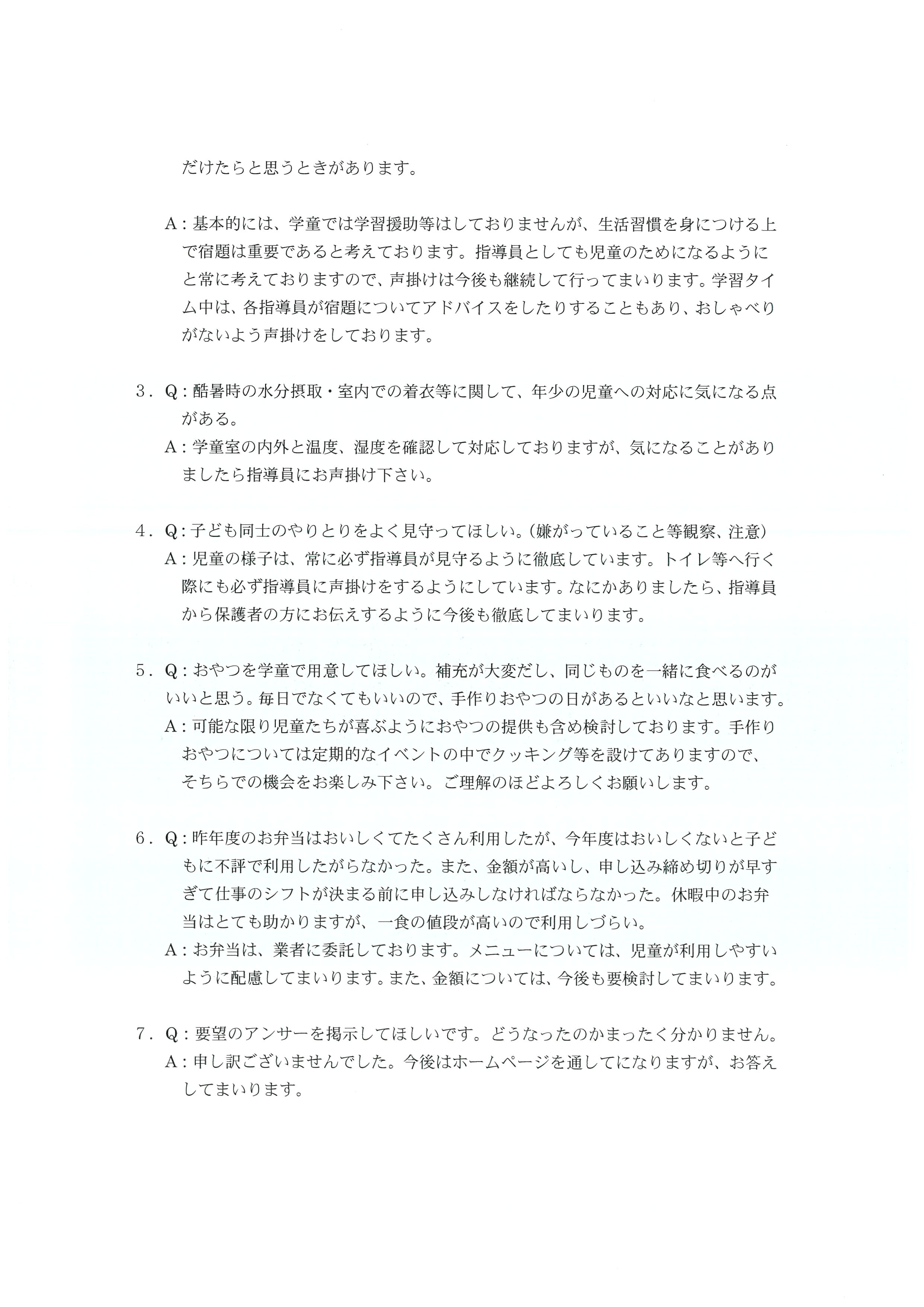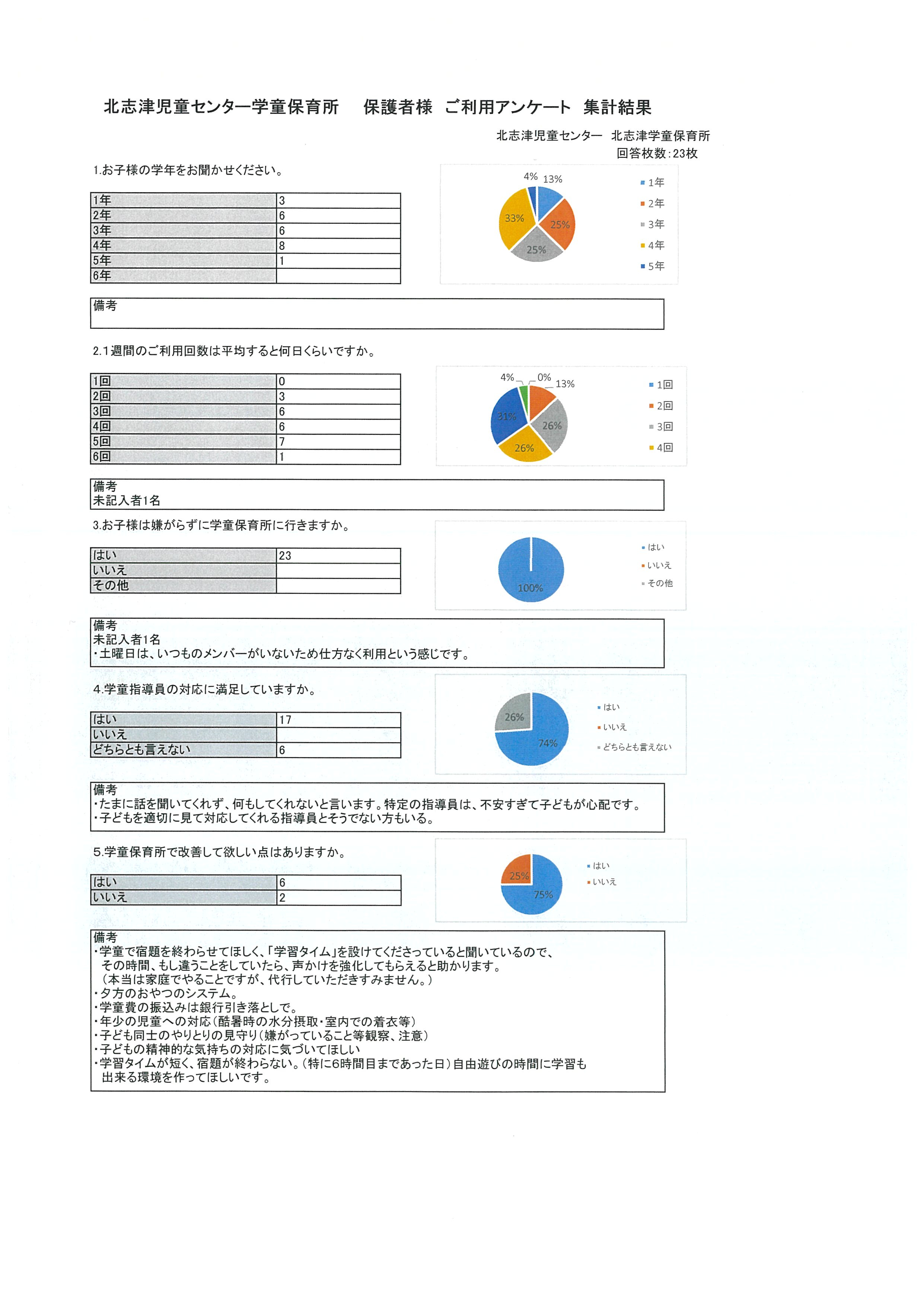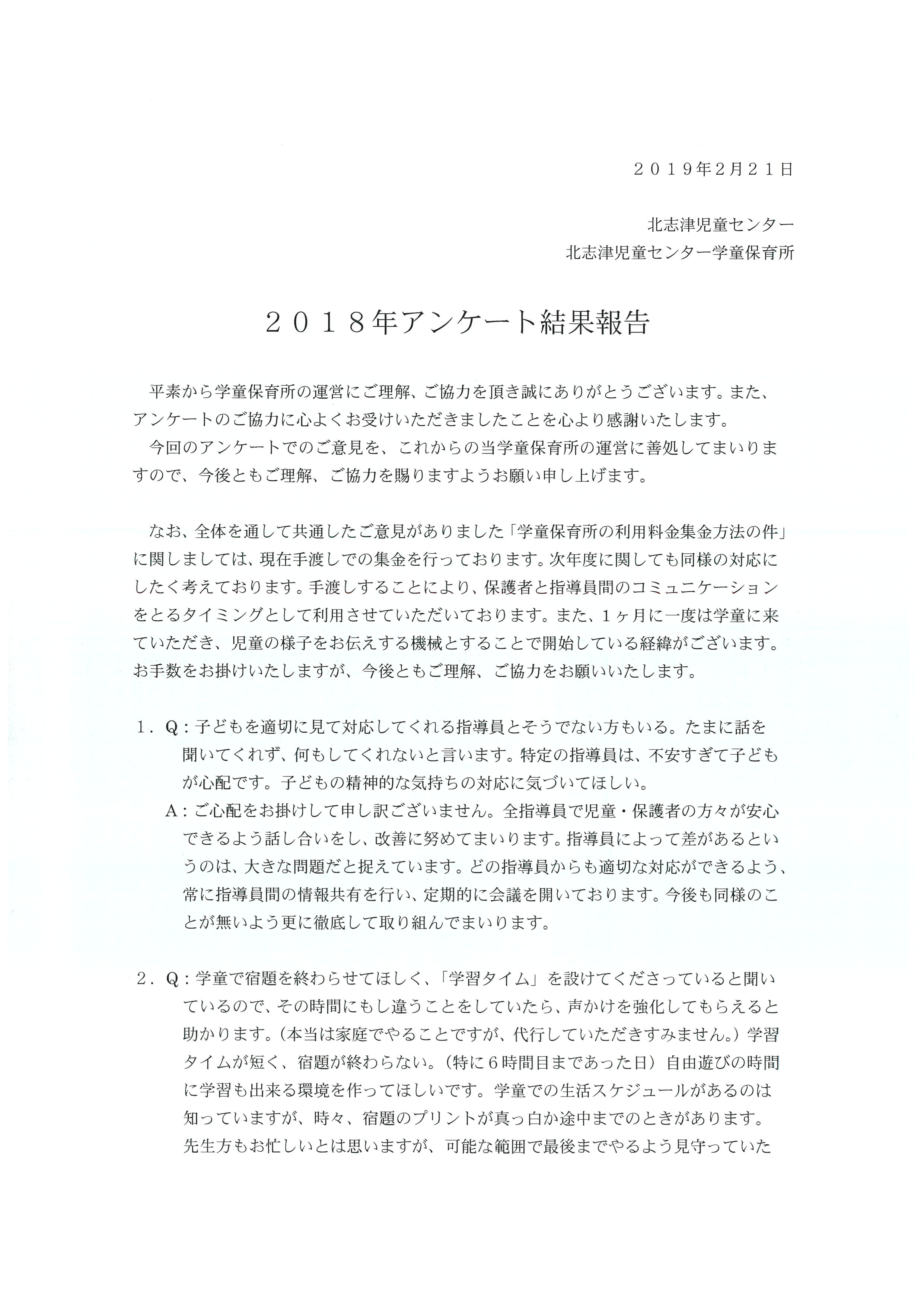 2019/02/22 平成30年度 北志津児童センター学童保育所 アンケート結果