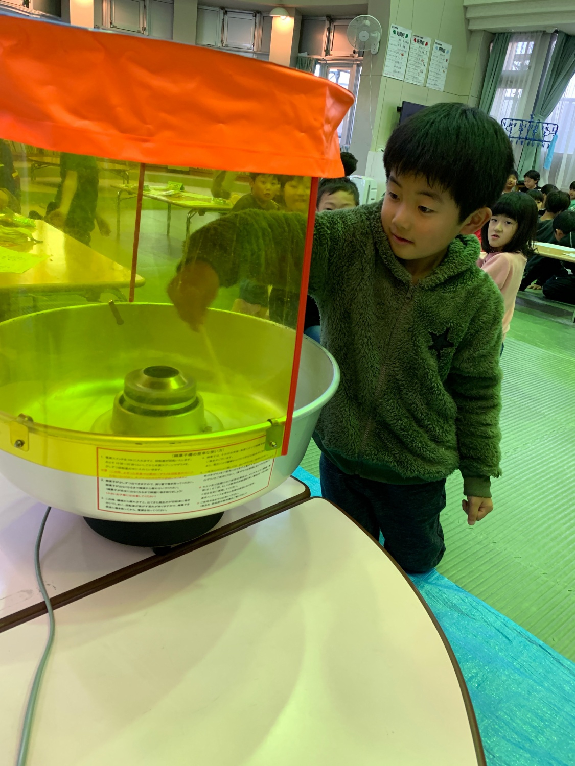 なぜ、綿あめは出来るのか?ちょっと難しい理科の勉強をした後は、綿あめ作りをしました。