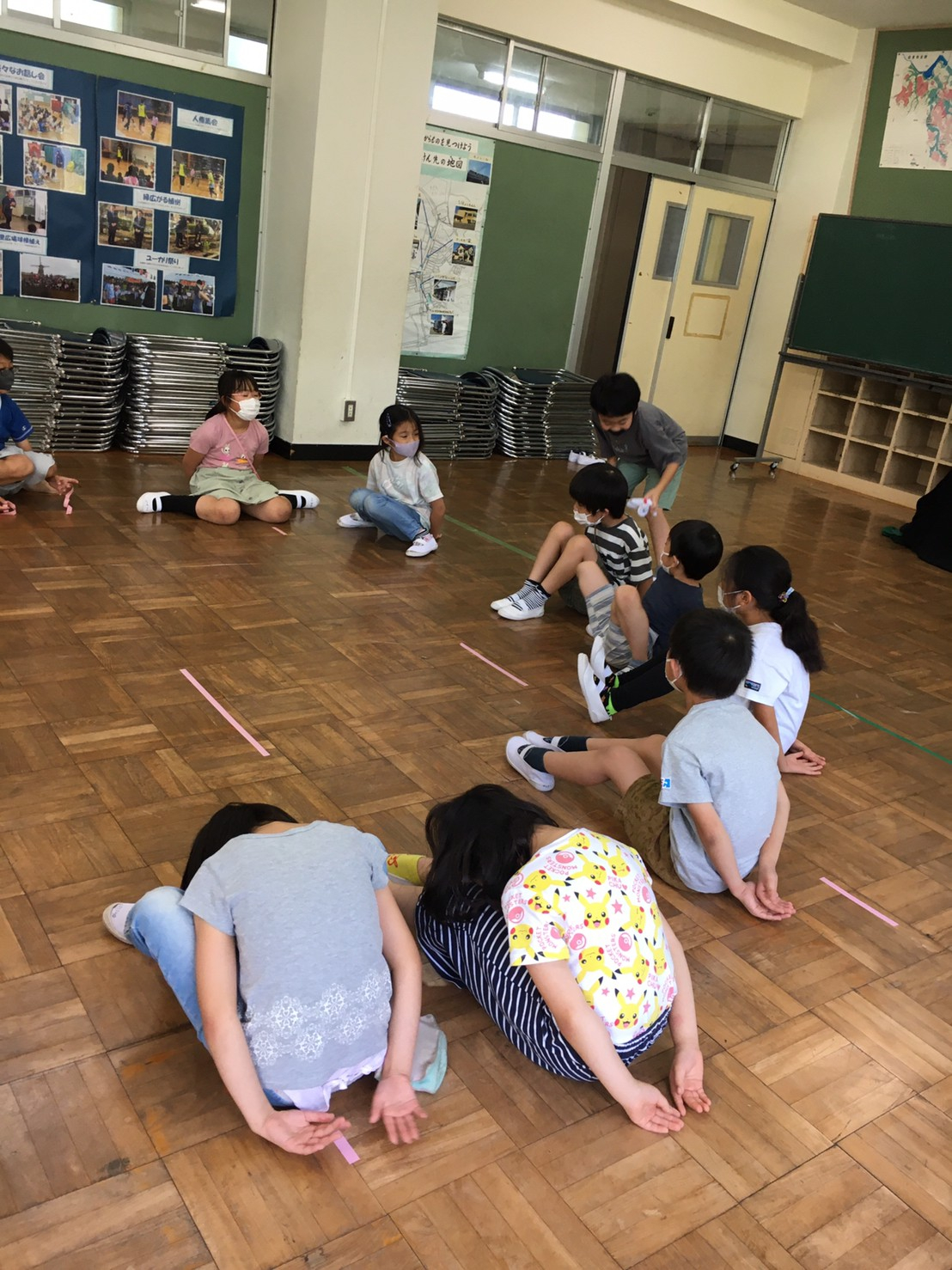 コロナ禍の中なるべく離しながら始めたのですが、段々くっついてしまいそうになり、声かけしながら