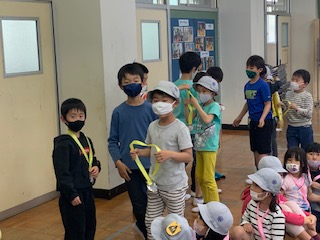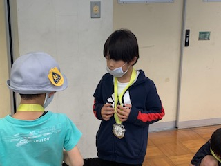 とてもうれしかったのか、大切にランドセルにしまったメダルを、お迎えの時に首にかけて帰る子が大勢いました。