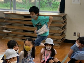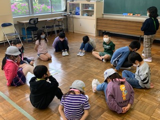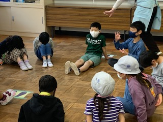 数日後ハンカチ落としがやりたいと1年生から話が出たので、みんなで遊ぼうで再度行いたいと思います。