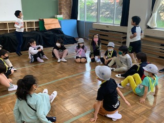 新入生歓迎会でみんなでハンカチ落としを行いました。 ルールがわからない子がたくさんいたので
