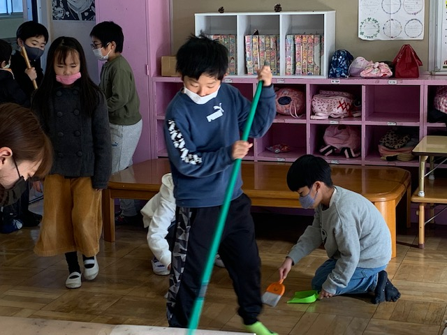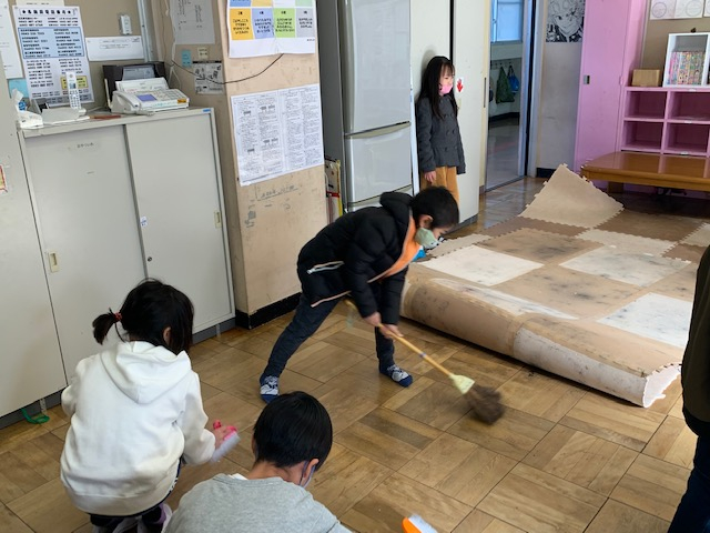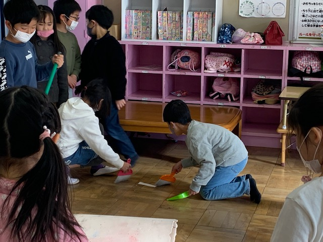 今年最後の学童でみんなと大掃除を行いました。自分のロッカーをきれいにしてから、本棚やお道具箱の棚を