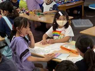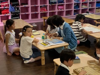 将棋、LEGO、折り紙、ぬりえ、おままごとなどお友だちと会話しながら楽しんでいます。