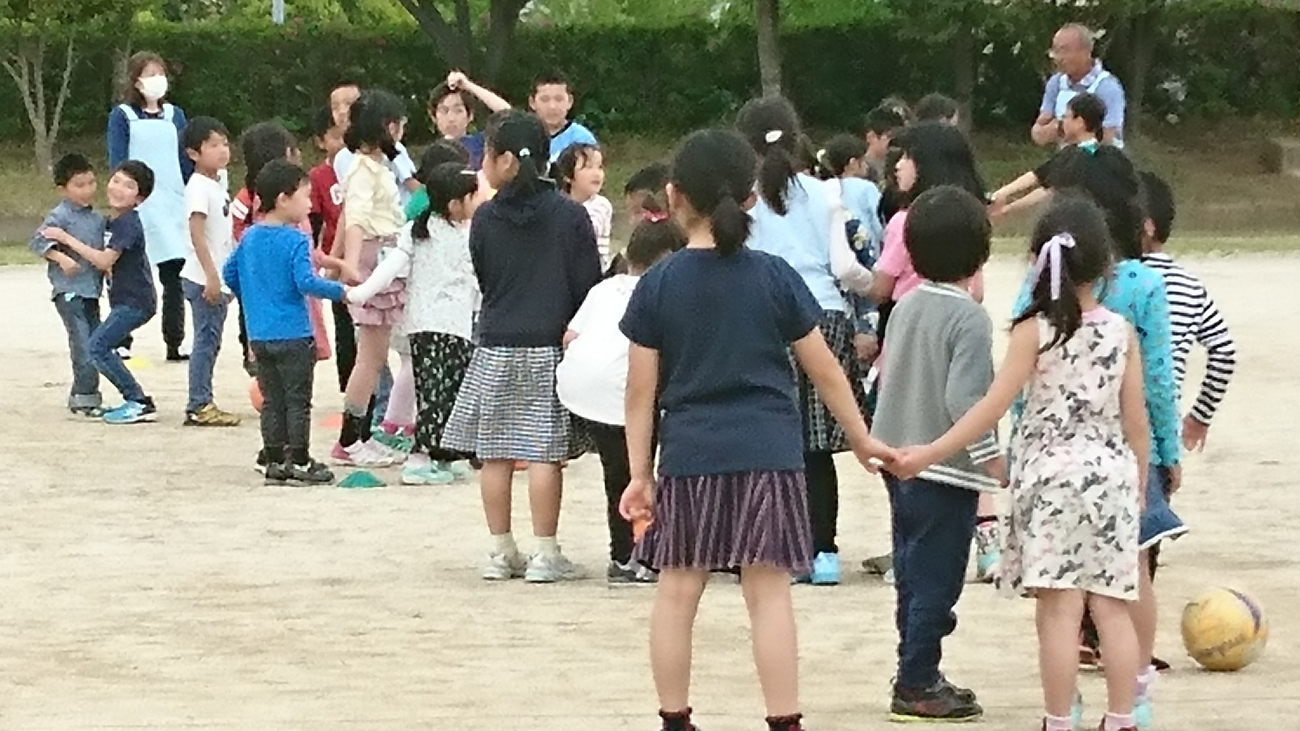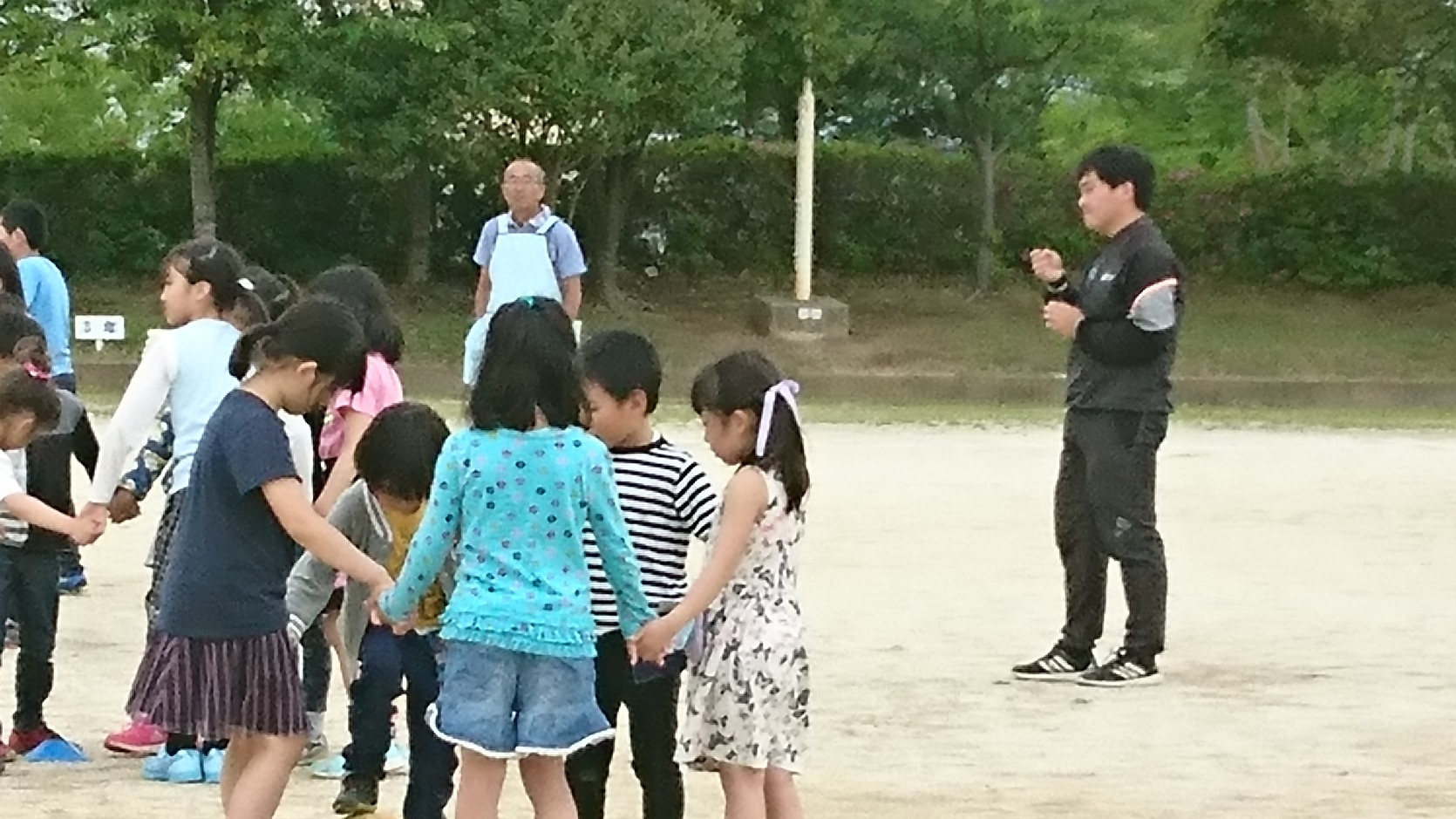 みんな真剣に先生の話を聞いてるね! 久しぶりに全員で外に出て元気いっぱい運動ができました。