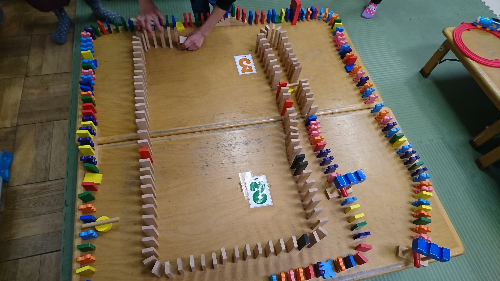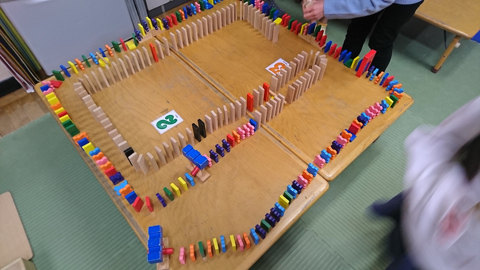 今、小竹女子たちでドミノにはまっています。これはまだ途中ですが完成までに倒れてしまい、