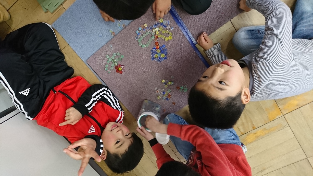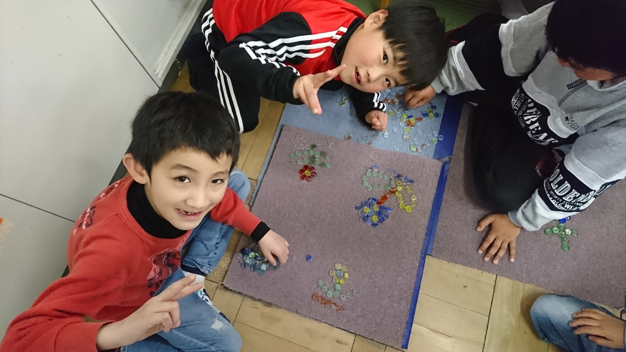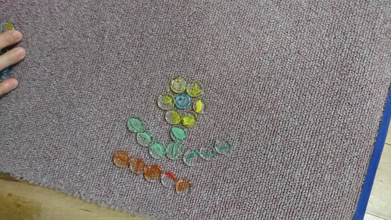 男子なのにおはじきでお花を作りました。 なぜお花?? 乙女になりたかったのかな?