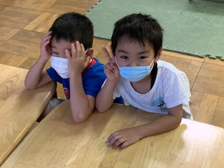 ふざけて嫌だねぇ~という子がいますが、赤ちゃんマスクをさせるよと持っていくと急いで自分のマスクを