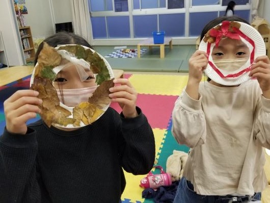 お面やお皿、リースなど・・・子供たちの作りたいものを自由に作りました。