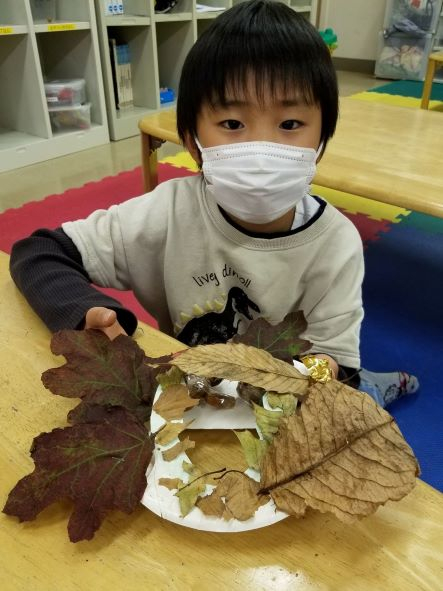 2021/11/26 落ち葉でリース作ったよ!