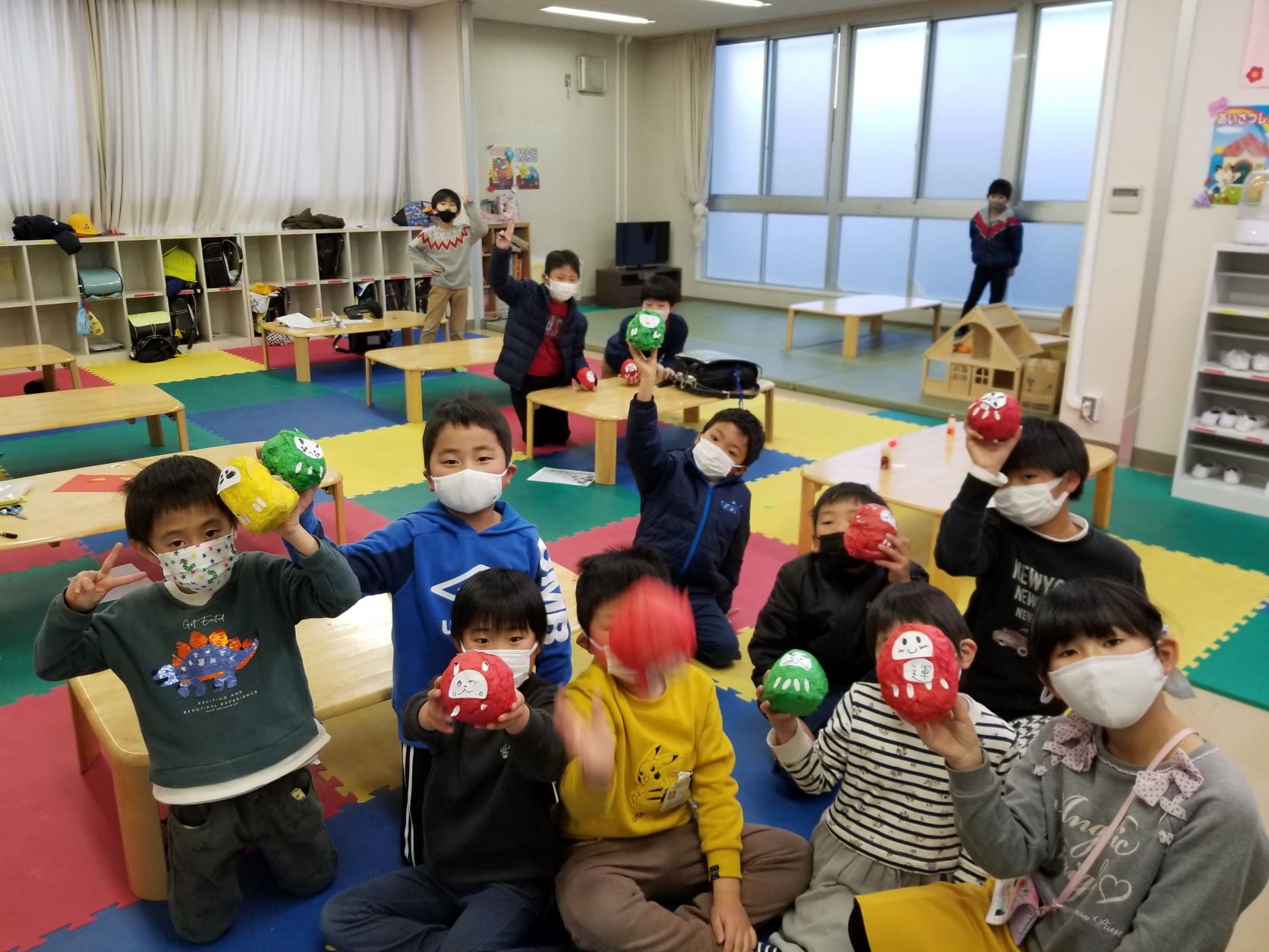 正月伝承遊び 絵馬とだるまに願いを込めてみんなで作りました!