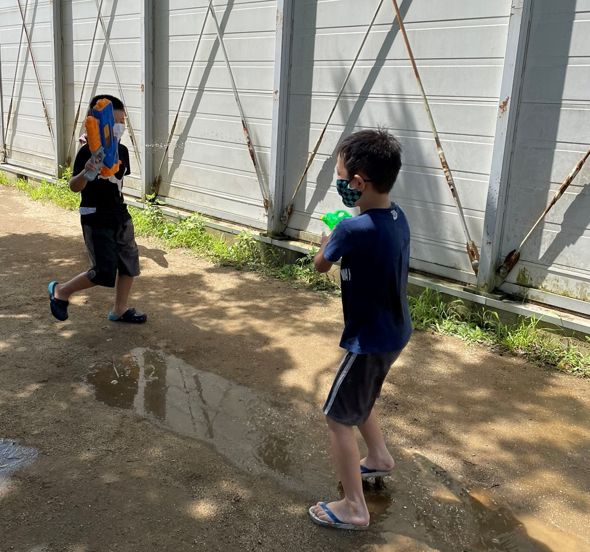 各々お家から持参していただいた水鉄砲を用いて、怪我に気を付けながら思いっきり楽しみました!
