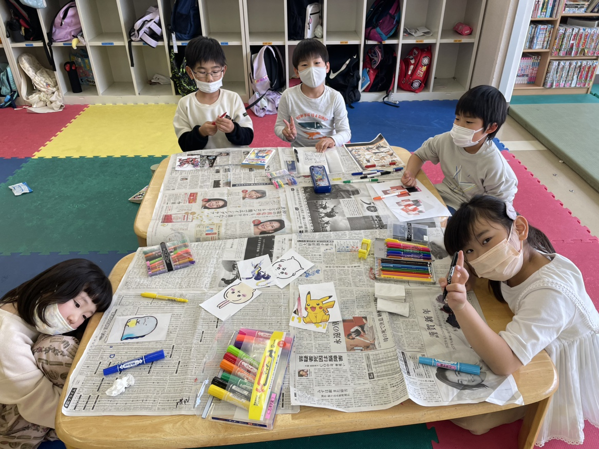 おうちから持ってきた好きなキャラクターの絵などをみんな集中して丁寧にプラバンに写します・・・