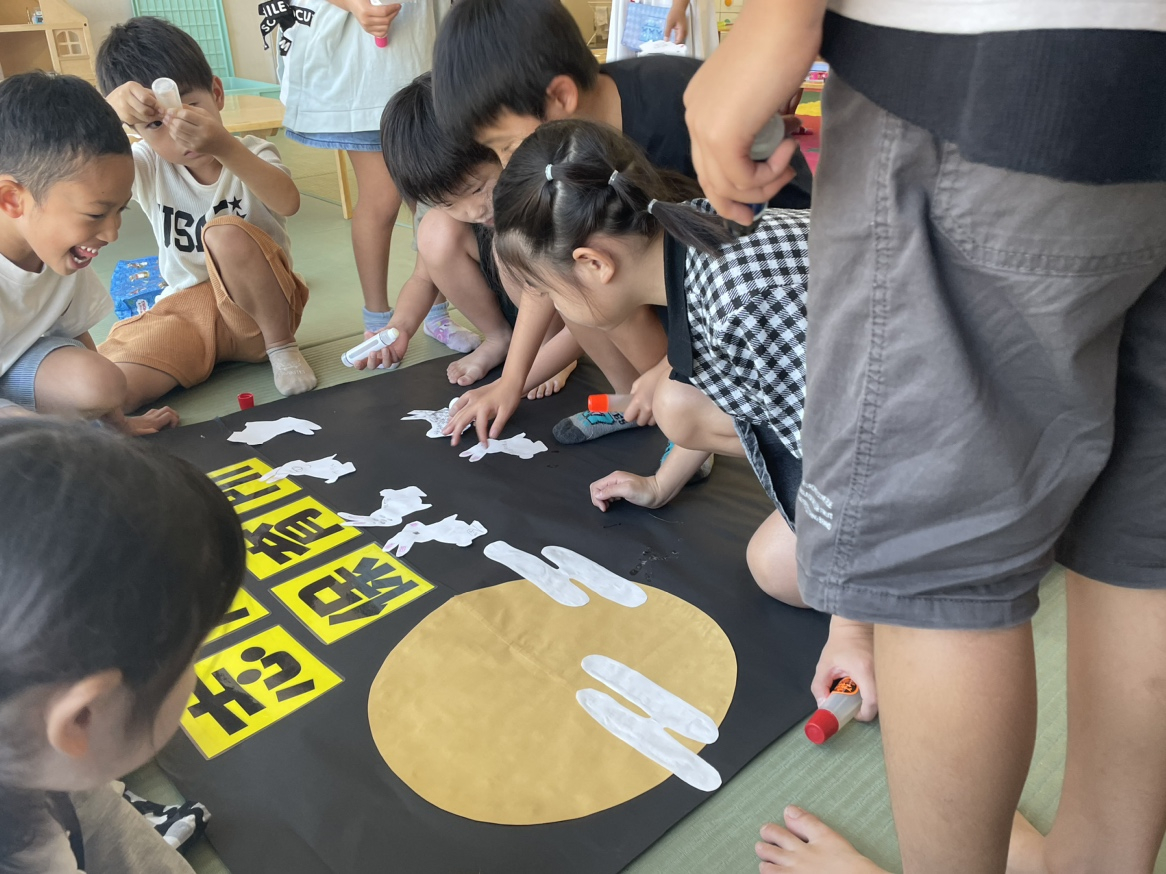 「星貼るよ!」、「月作るの手伝いたい!」等、たくさんお手伝いしてくれてかわいい壁面が完成しました。